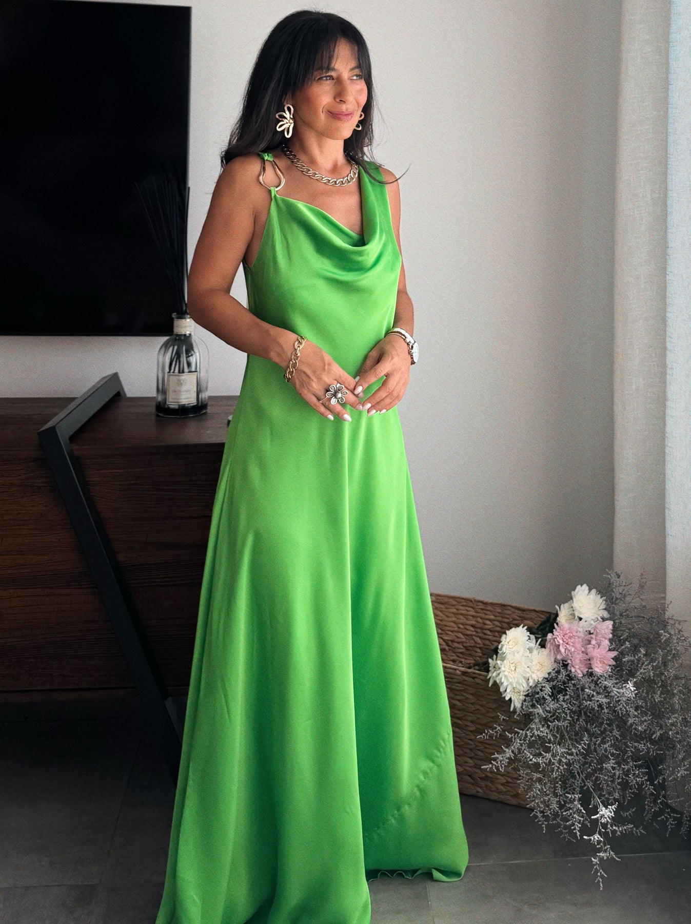 Este vestido combina frescura, elegancia y comodidad para que disfrutes sin pensar en cambiarte. Su diseño liviano y femenino lo convierte en una opción perfecta para salir de noche, celebrar y cerrar el año sintiéndote bien.